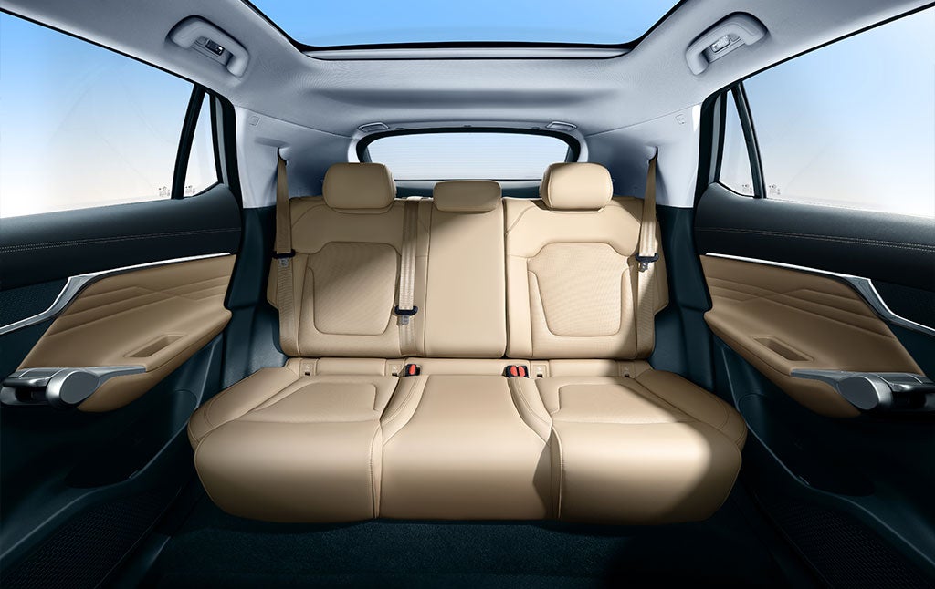 148 cm de ancho en las filas delantera y trasera, 85 cm de espacio para piernas en la parte trasera